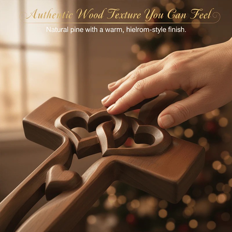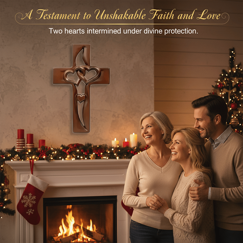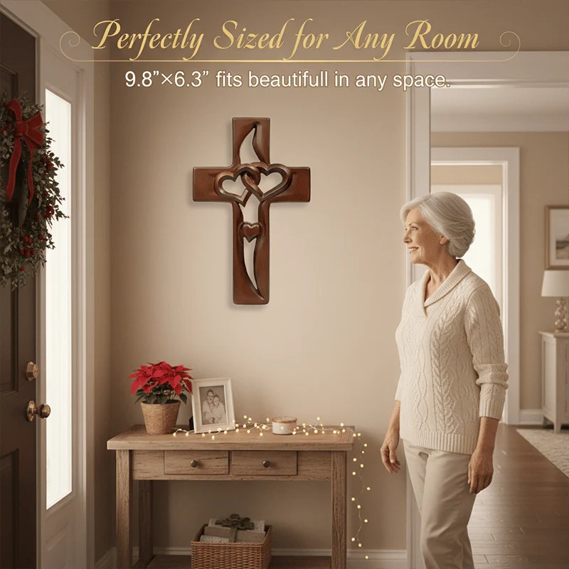 This piece tells a story. The two hearts are carved intertwining at the center to symbolize a bond that cannot be broken, protected by the strength of the cross. It serves as a daily spiritual reminder that love and faith are the unshakeable pillars of your home.