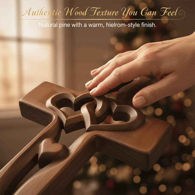 💗Mother's Day 49% OFF Hand-Carved Intertwined Hearts Wooden Cross